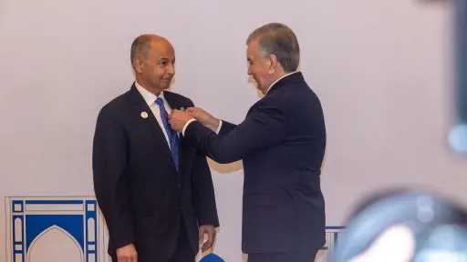 رئيس أوزبكستان يقلد رئيس الاتحاد الدولي للألعاب المائية وسام الصداقة